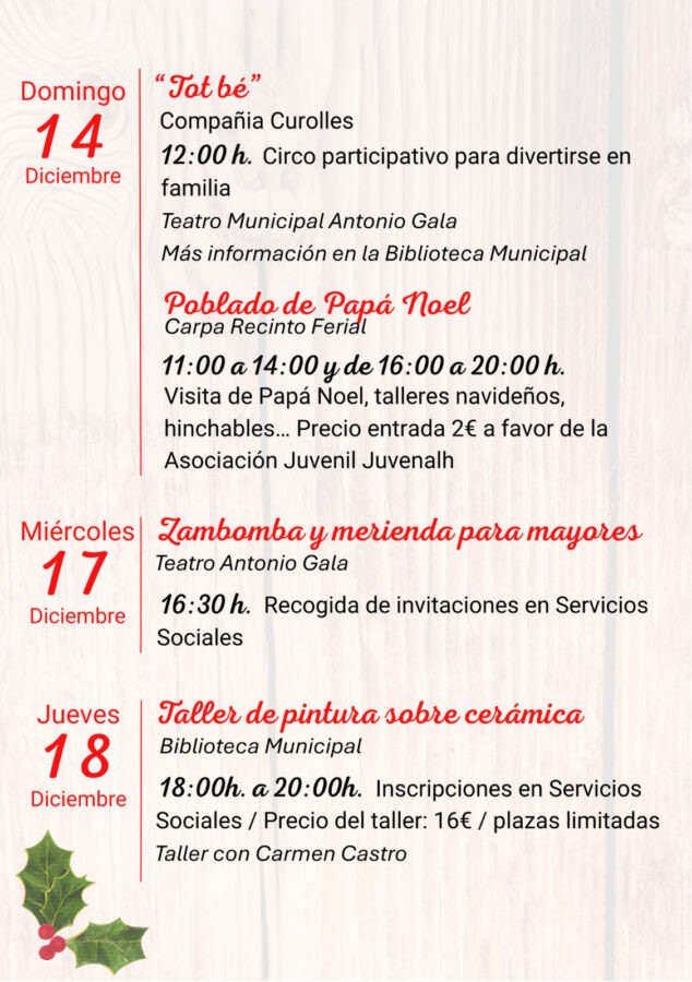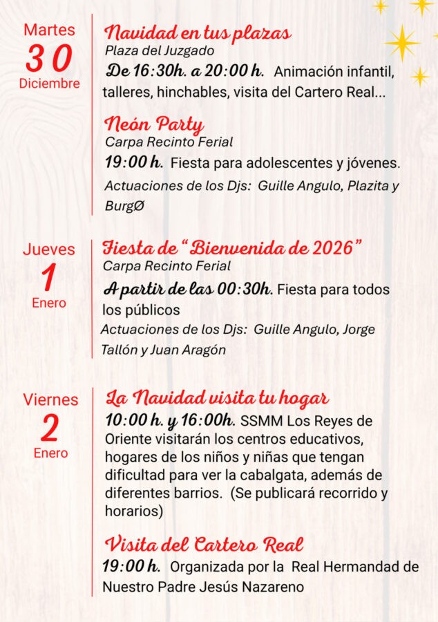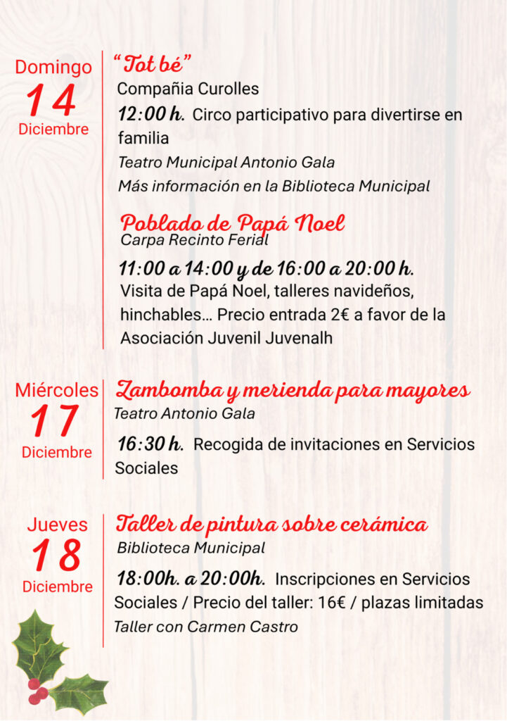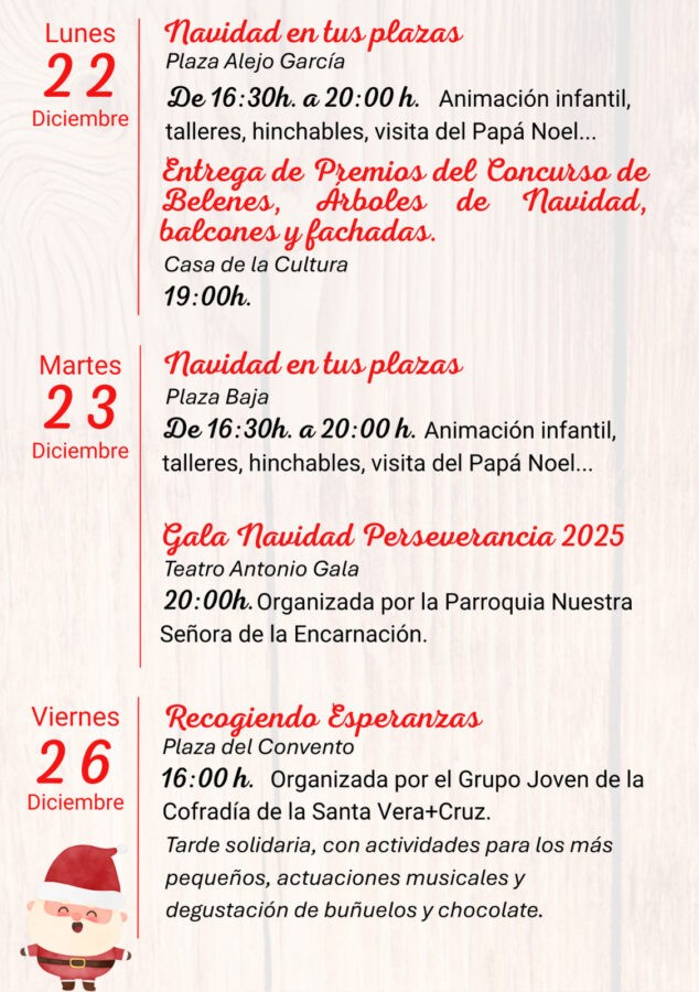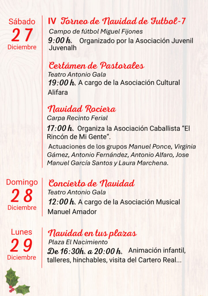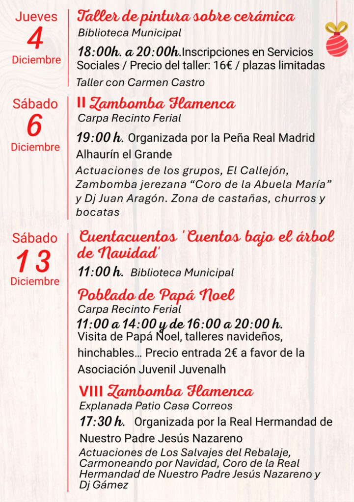 El Ayuntamiento de Alhaurín el Grande ha presentado este 24 de noviembre el programa de la Navidad 2025-26. Entre las principales novedades, destacan la celebración de una fiesta de Año Nuevo y el cambio de recorrido de la Cabalgata de Reyes. Es el siguiente: